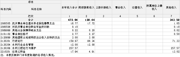 2024年度收入合计472.04万元,其中:财政拨款收入125.44万元,占26.57%;其他收入316.6万元,占67.07%。政府性基金预算财政拨款收入3万元,占0.63%。