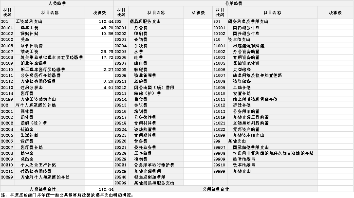 (一)基本支出:2024年基本支出预算113.44万元,是指为保障单位机构正常运转、完成日常工作任务而发生的各项支出,包括用于基本工资、津贴补贴等人员经费以及办公费、印刷费、水电费、办公设备购置等日常公用经费。其中人员经费125.44万元,公用经费0万元。人员经费预算比 2023年减少30.11万元,减少24%,主要是人员经费调整;公用经费与上年持平。