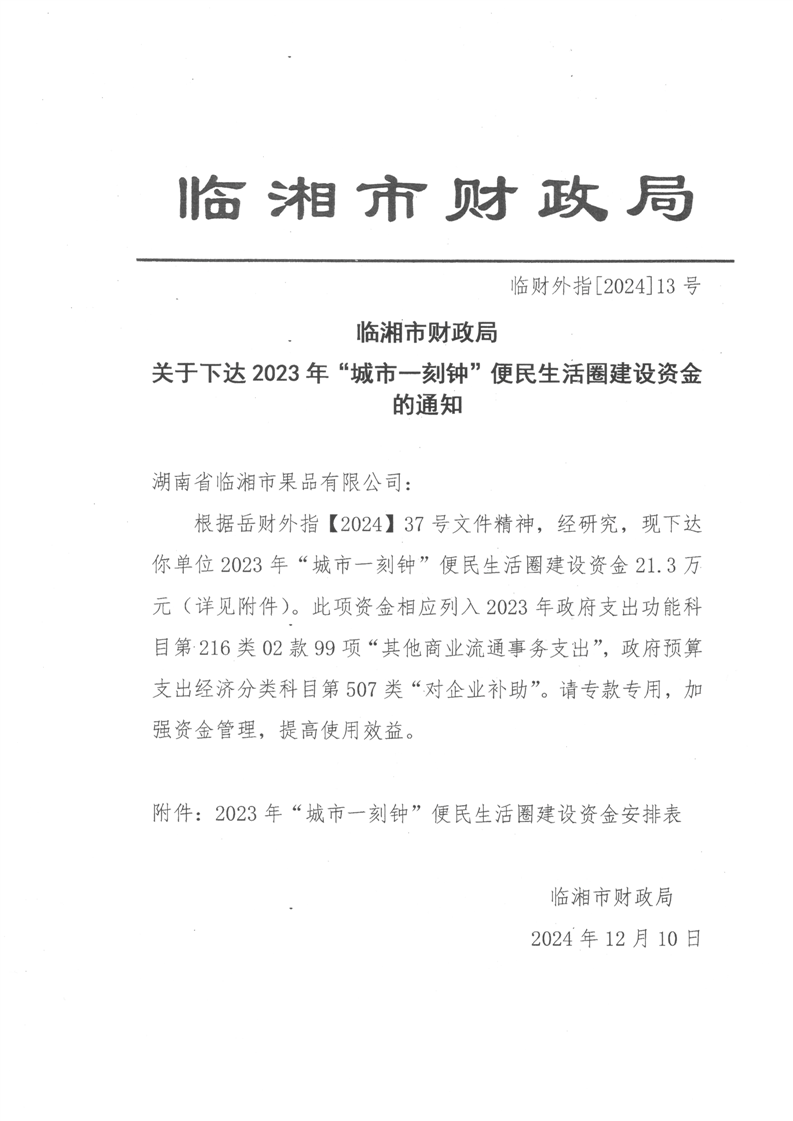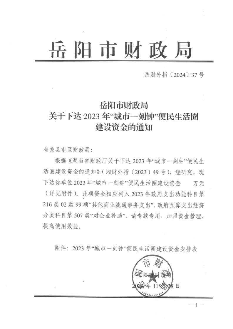 关于下达2023年“城市一刻钟”便民生活圈建设资金的通知