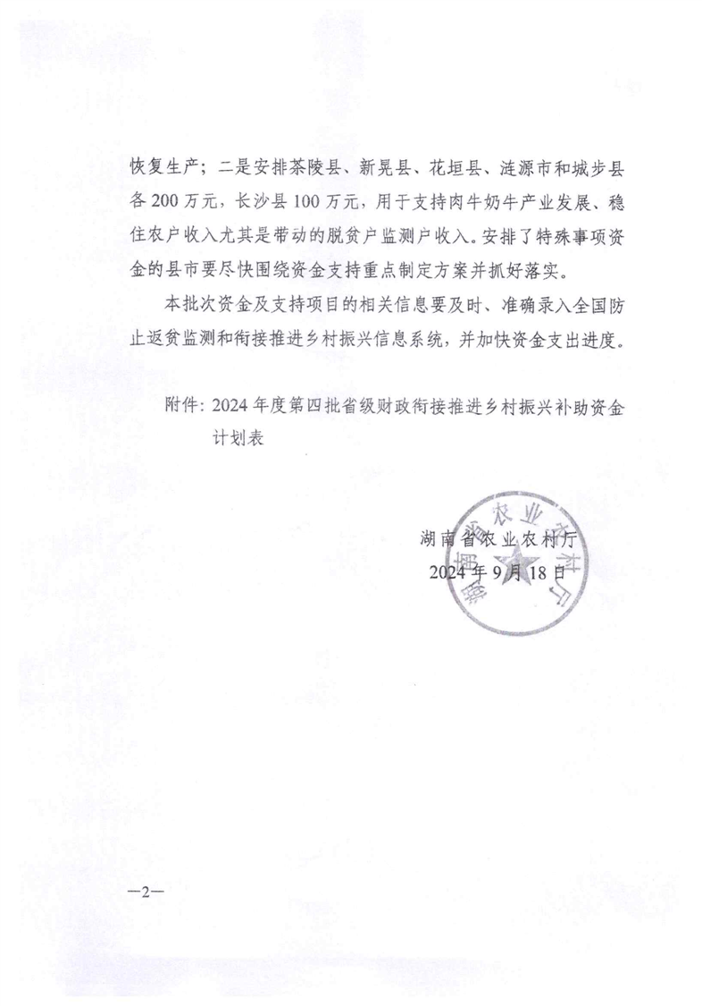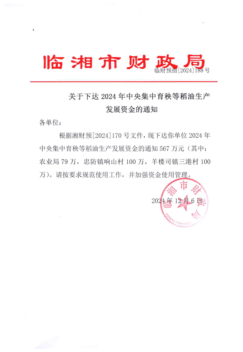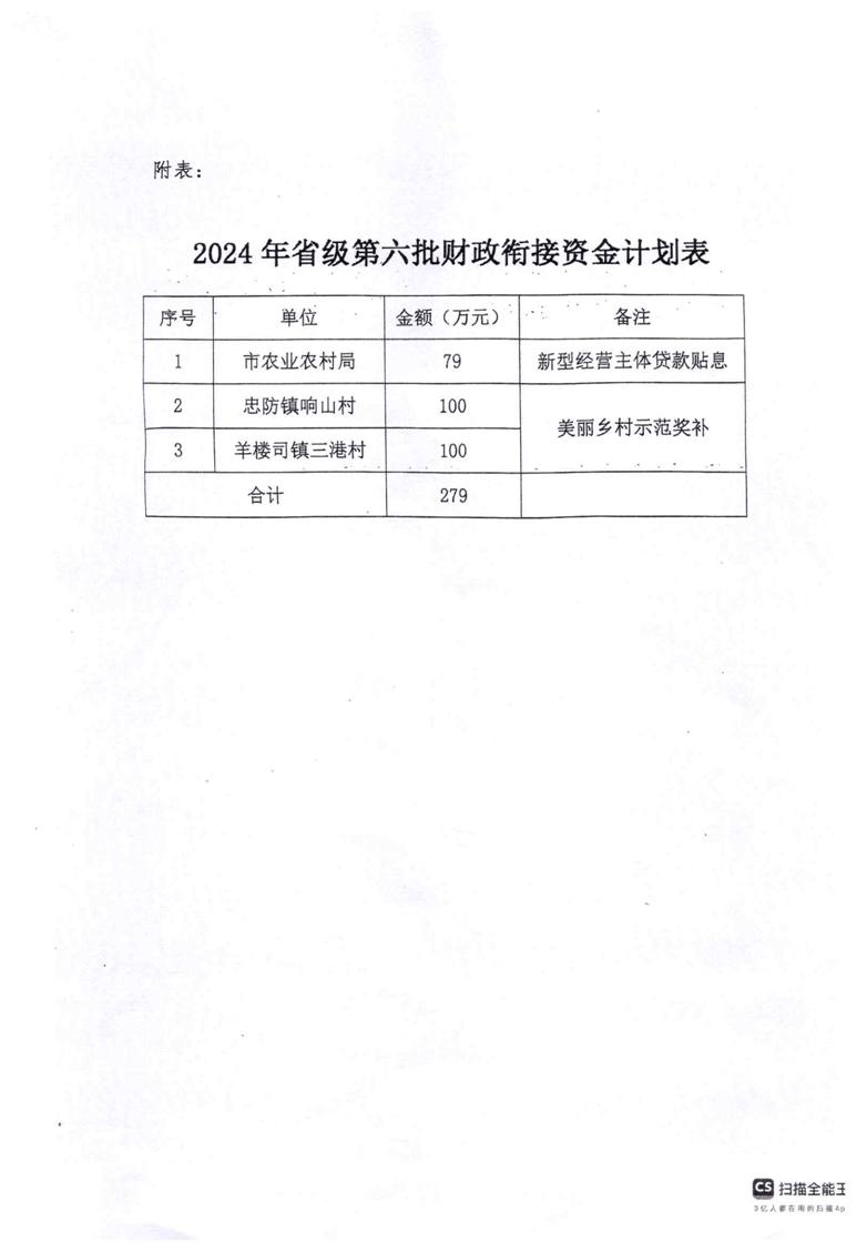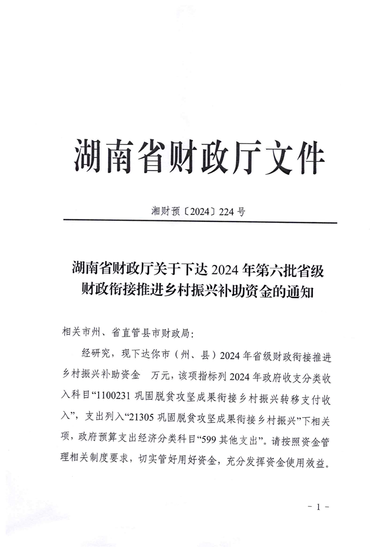 关于下达2024年第六批省级财政衔接推进乡村振兴补助资金的通知