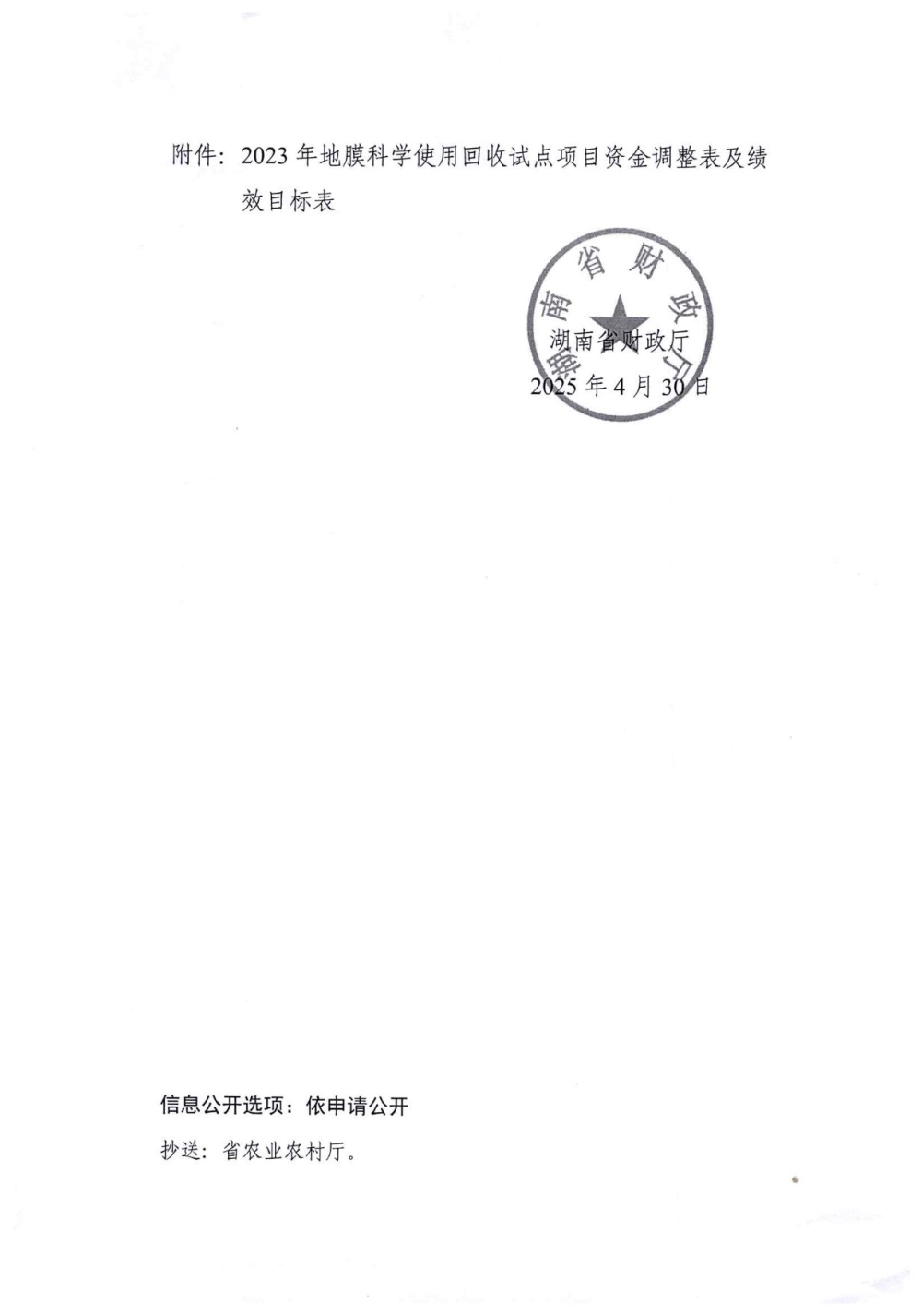 湖南省财政厅关于调整下达2023年部分地膜科学使用回收试点项目资金的通知