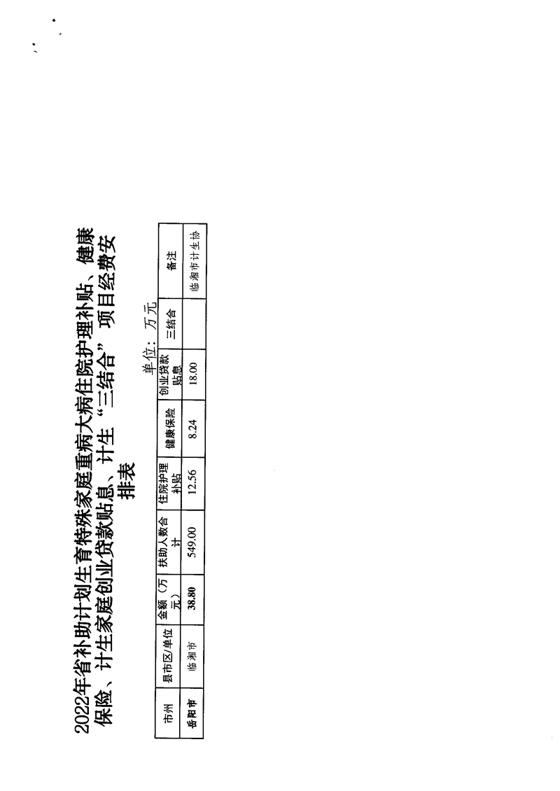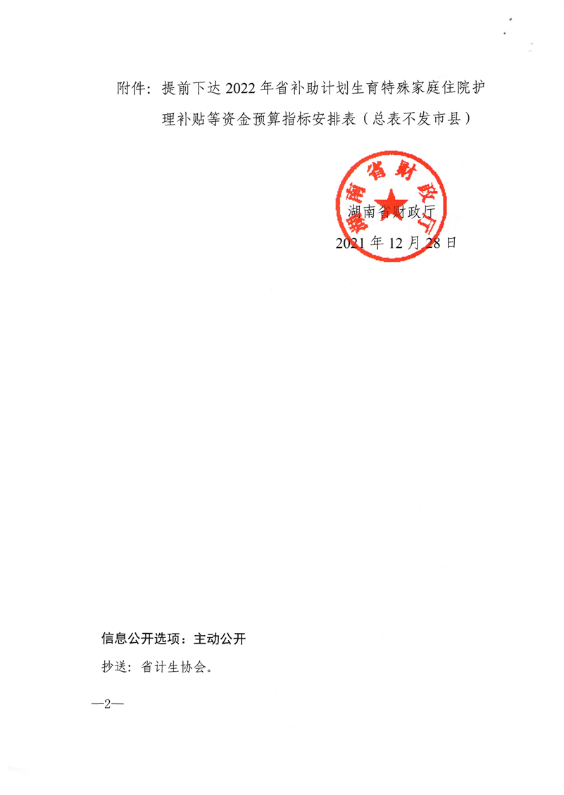 关于提前下达2022年补助计划生育特殊家庭住院护理补贴等资金的通知