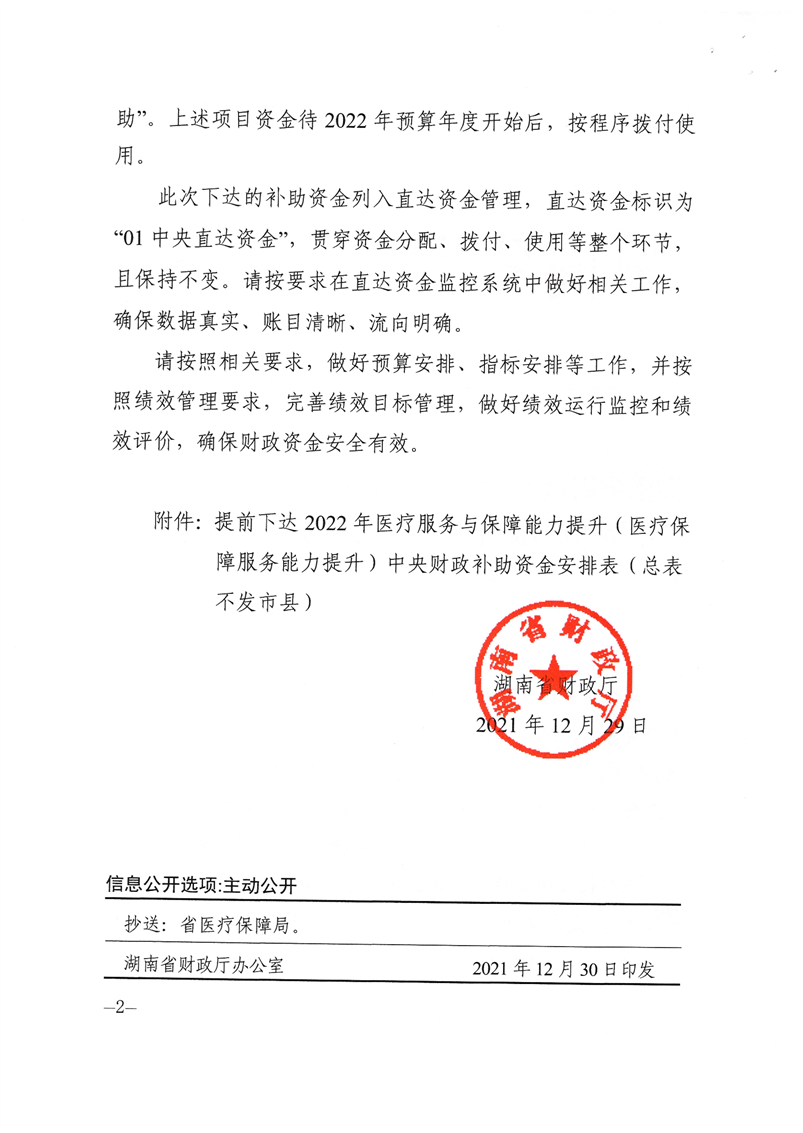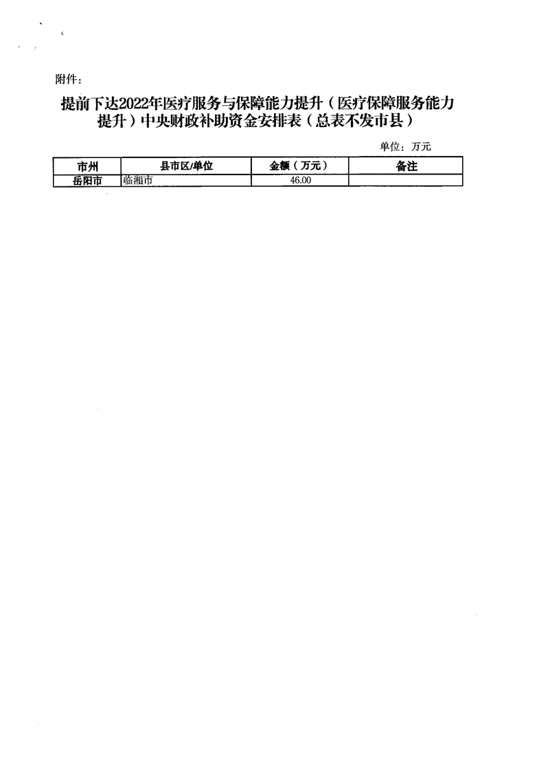关于提前下达2022年医疗服务与保障能力提升(医疗保障服务能力提升)中央财政补助资金的通知