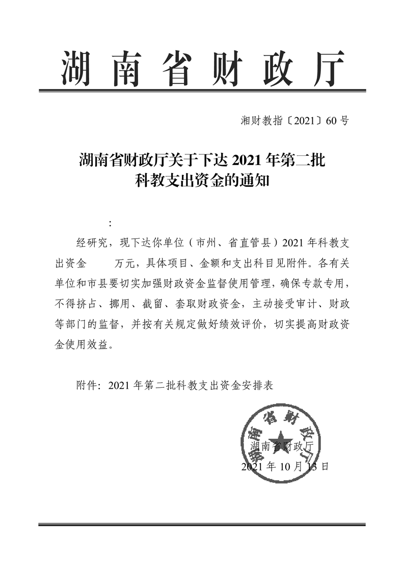 关于下达2021年第二批科教支出资金的通知