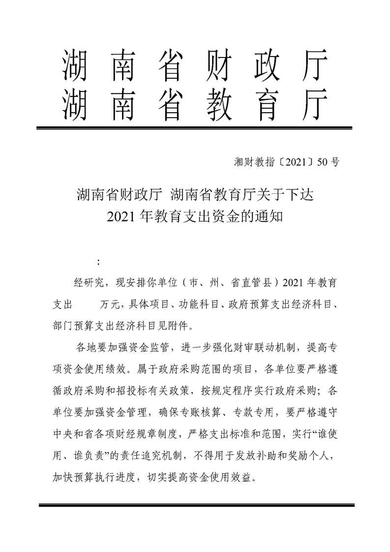 关于下达2021年教育支出资金的通知