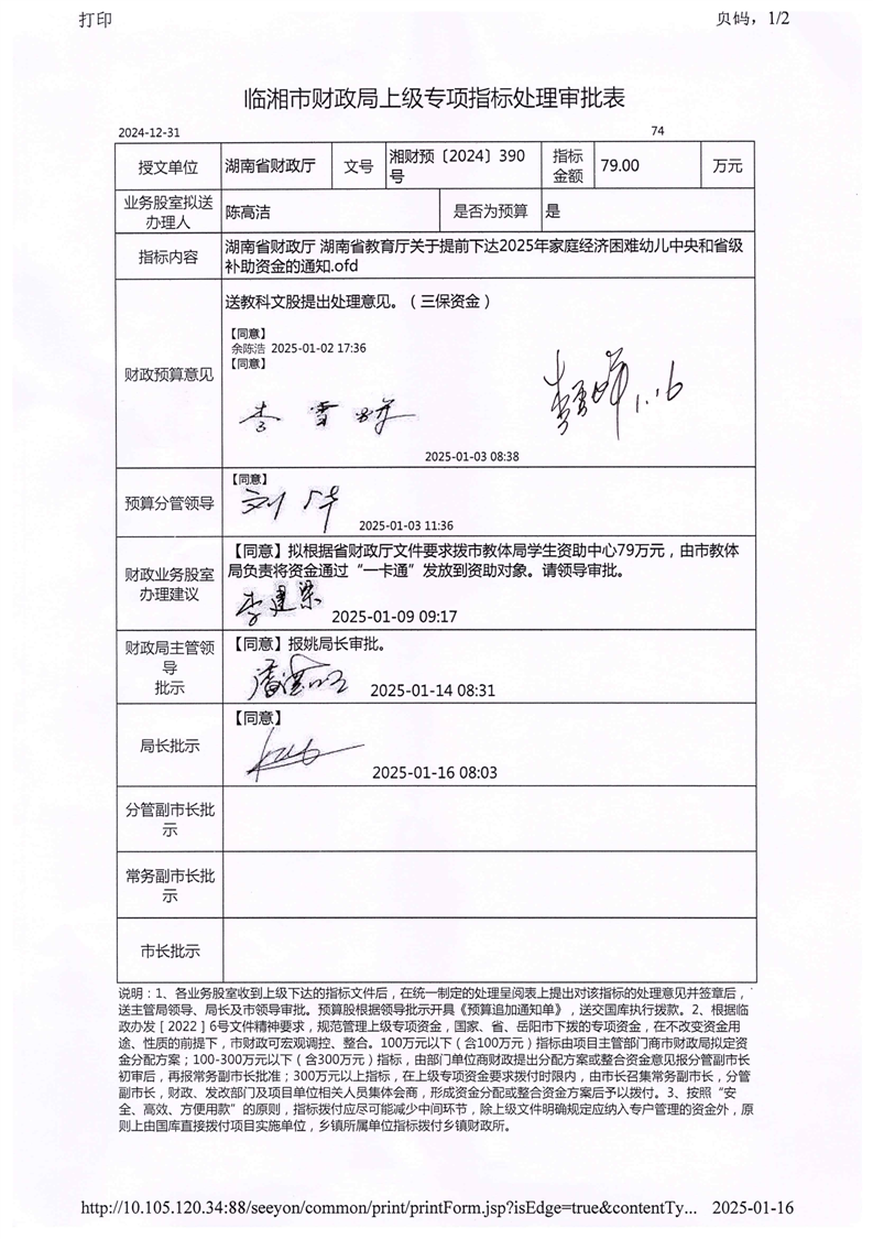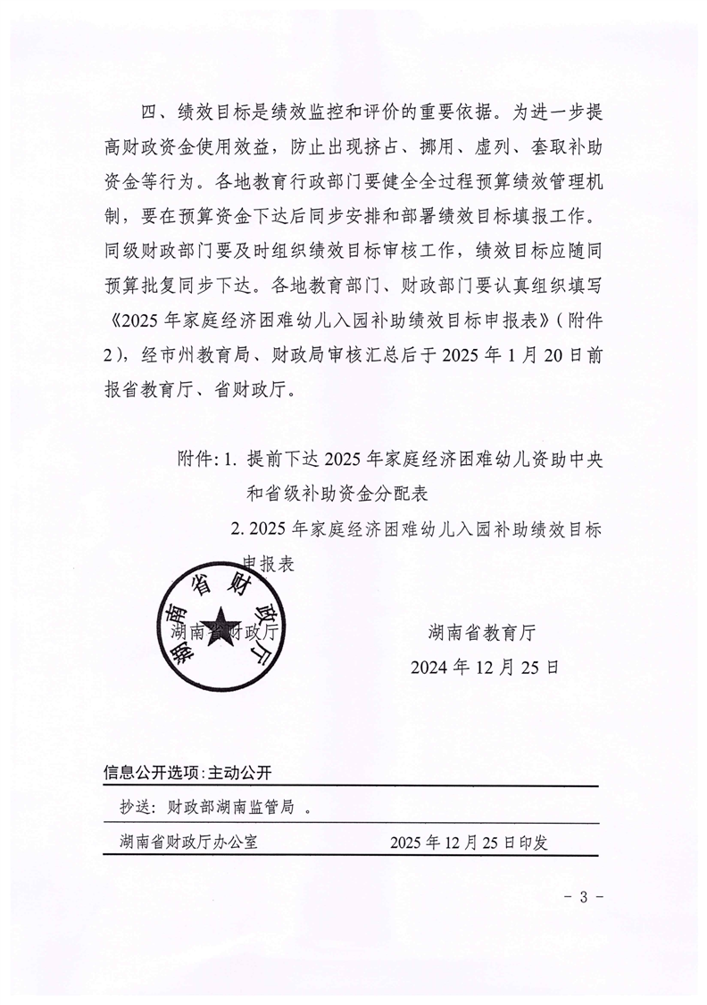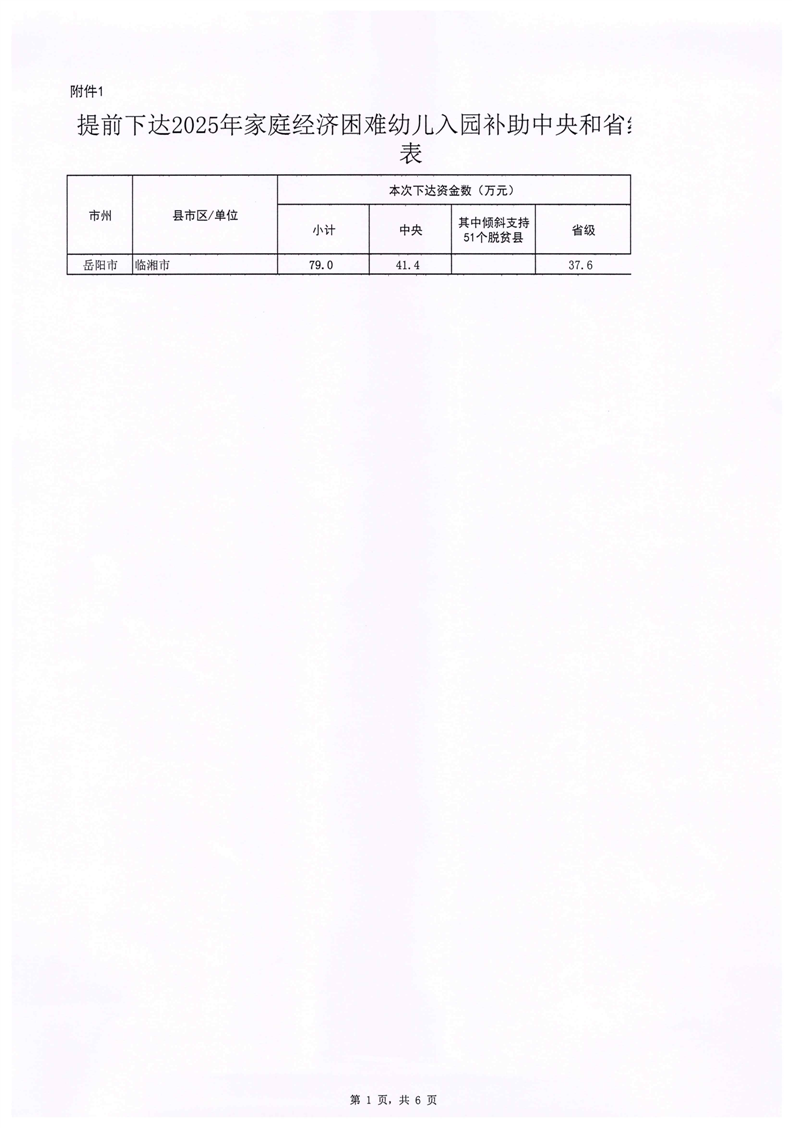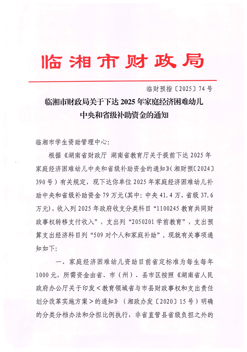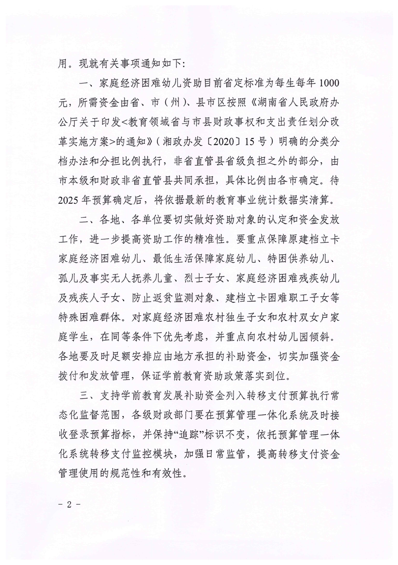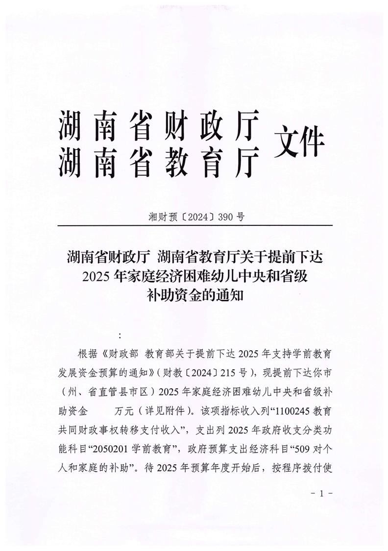 关于提前下达2025年家庭经济困难幼儿中央和省级补助资金的通知