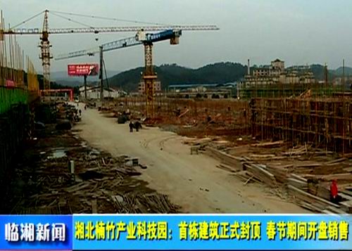2015年8月初开工建设的湘北楠竹科技产业园是我市工业建设重点项目。经过5个月时间紧张建设,元月8日上午,园区首栋建筑正式封顶。