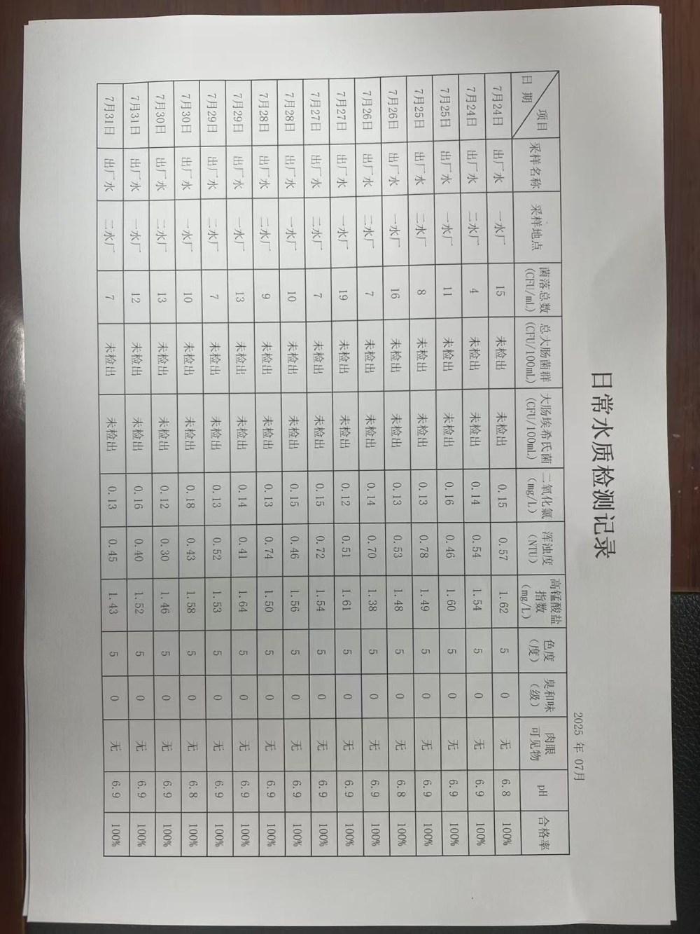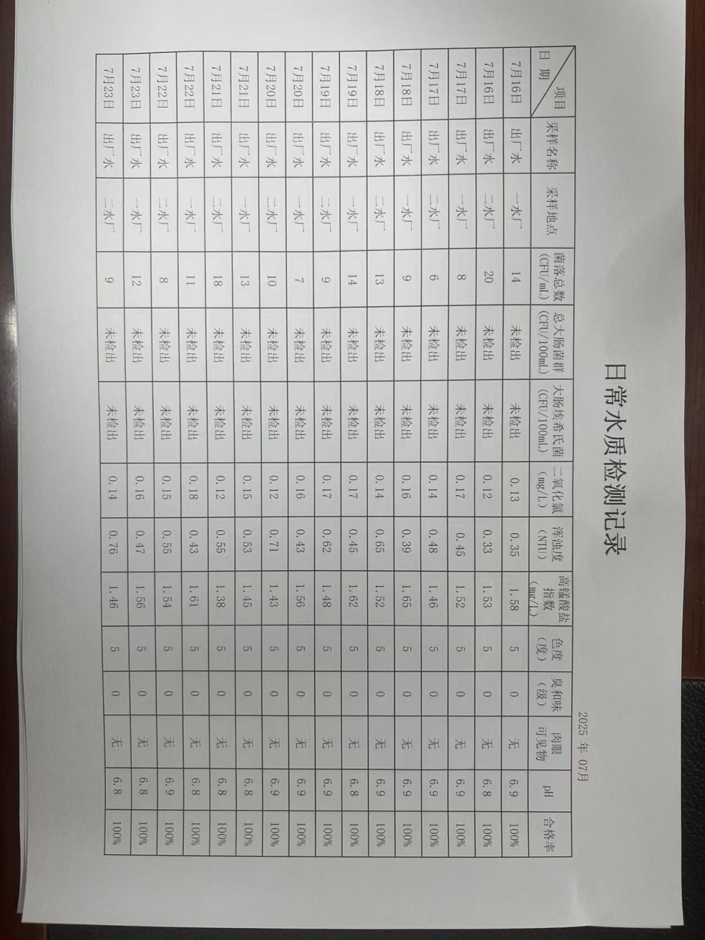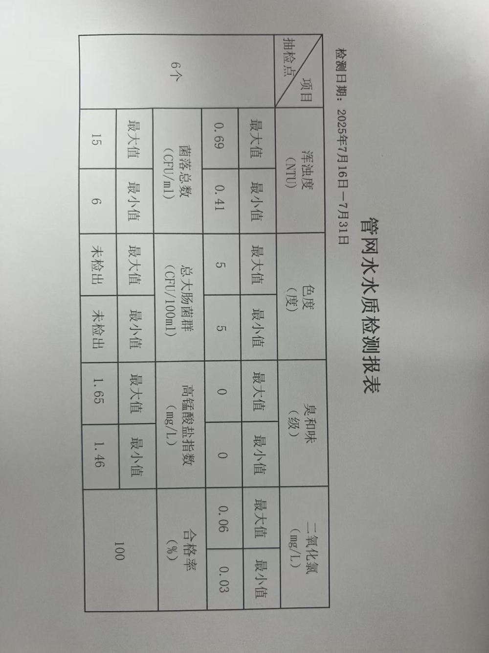 2025年7月下半月兴临自来水公司日检、半月检水质信息公开