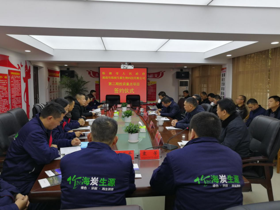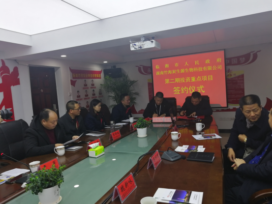 12月29日上午,湖南竹海炭生源生物科技有限公司与临湘市人民政府在市贸促会会议室,成功签约湖南竹海炭生源第二期投资重点项目。市领导魏新咏、凌晓明、易兴建、王友华,及发改局、国土资源局、规划局、住建局、工科局、环保局、贸促会、法制办、羊楼司镇、竹乡投等相关部门单位负责人参加了签约仪式。