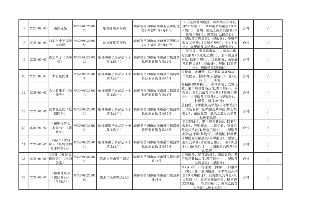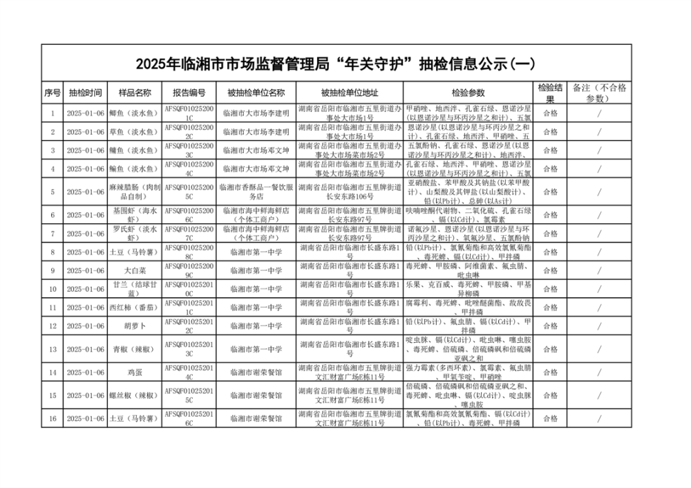 2025年临湘市市场监督管理局“年关守护”抽检信息公示(一)