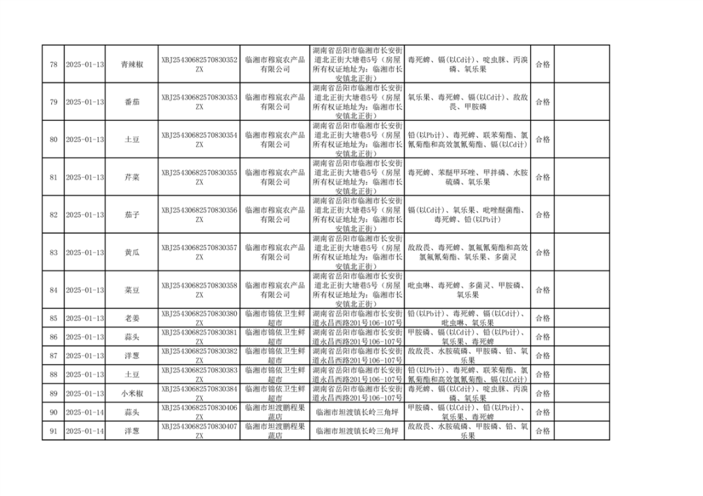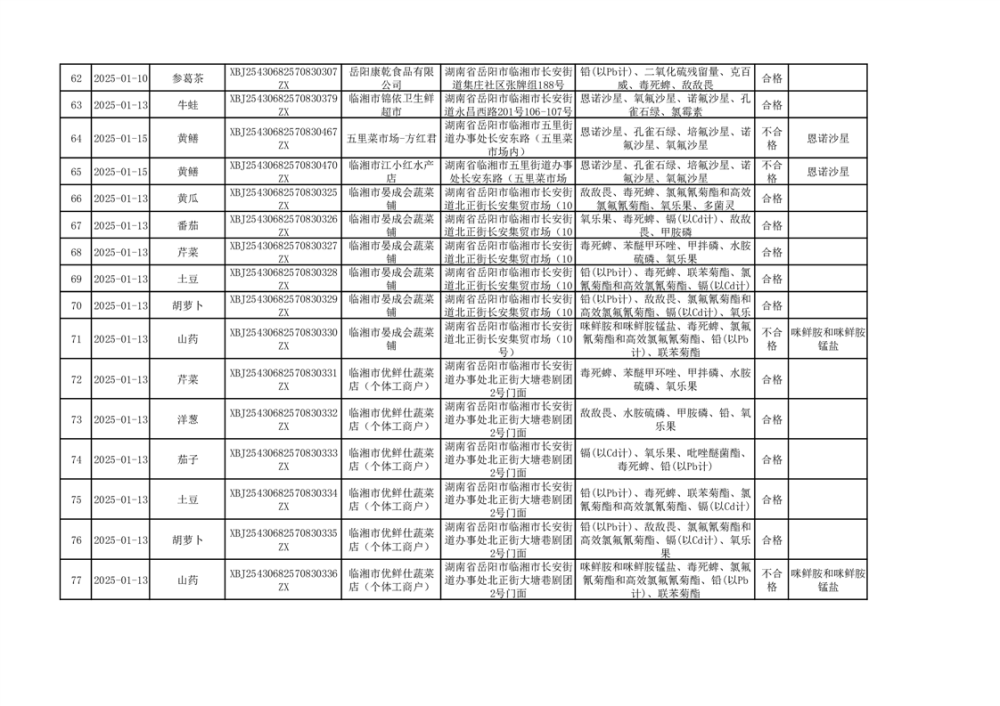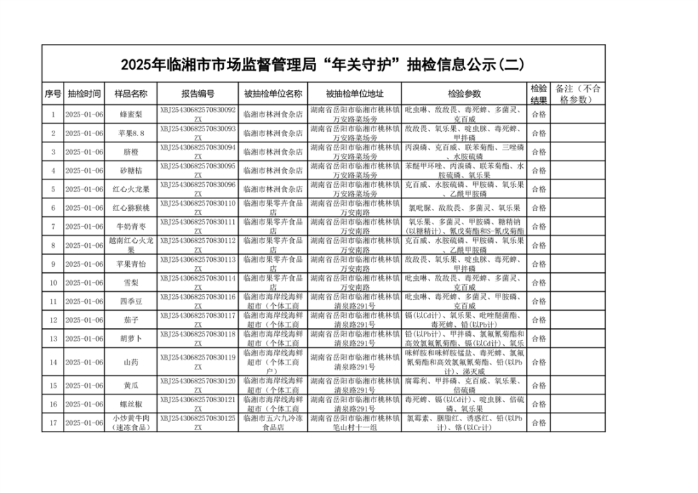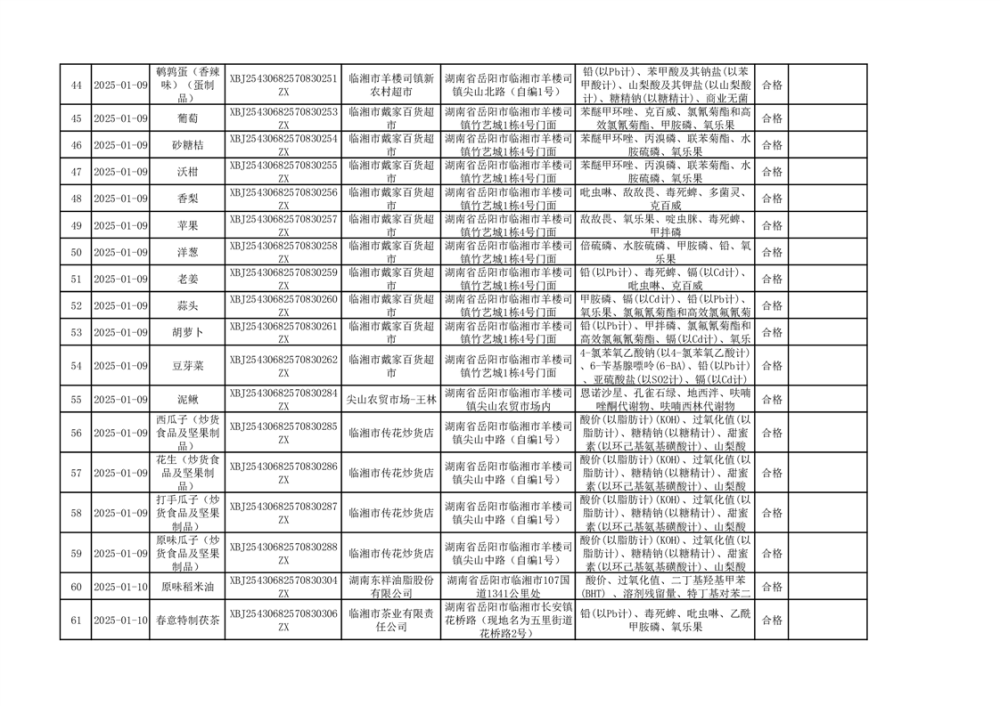 2025年临湘市市场监督管理局“年关守护”抽检信息公示(二)