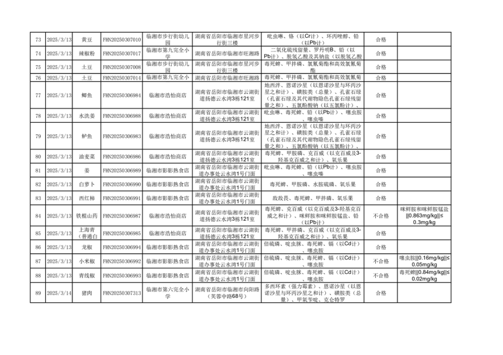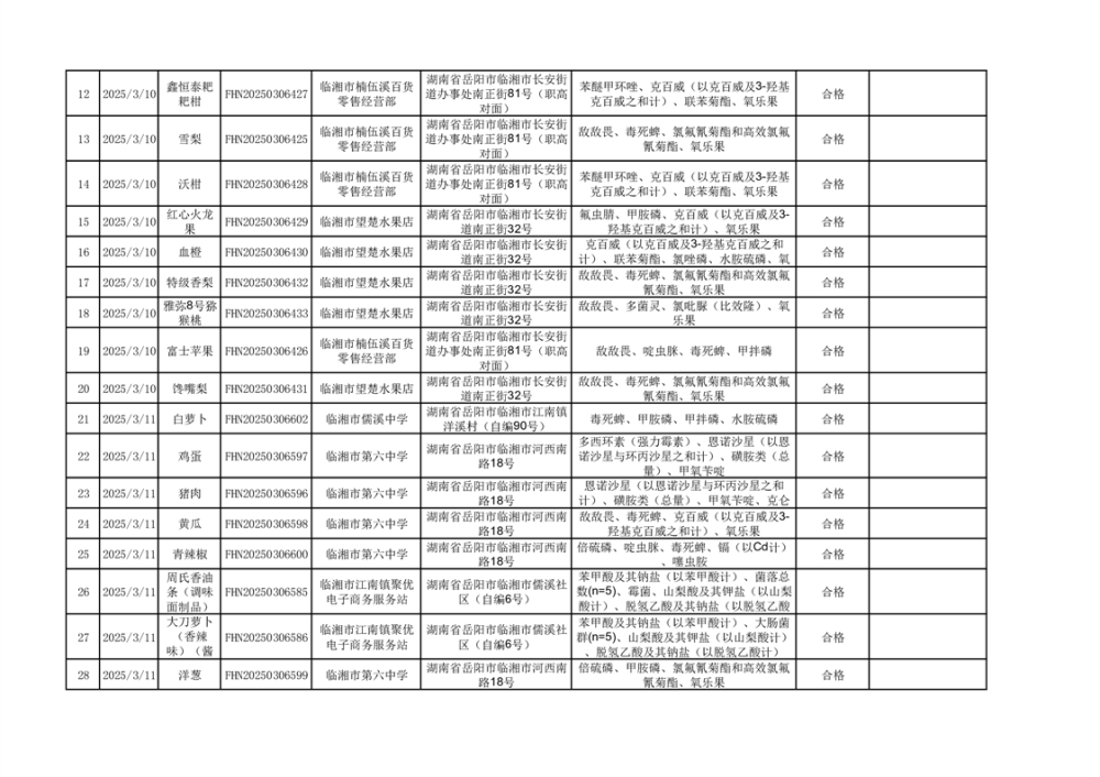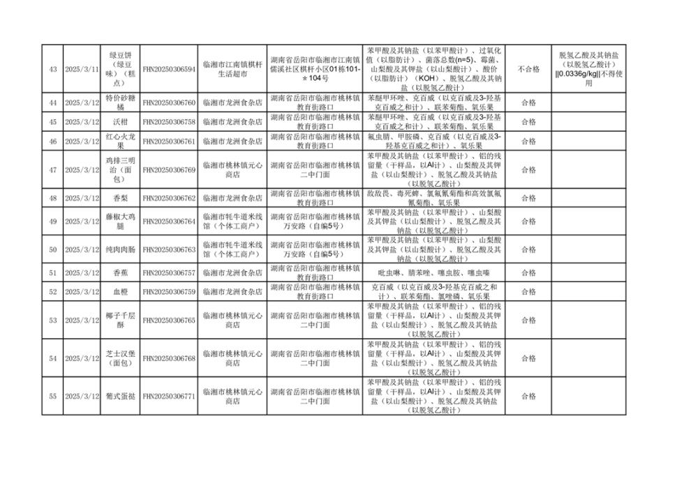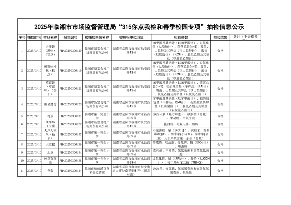 临湘市市场监督管理局2025年“315你点我检和春季校园专项”抽检公示