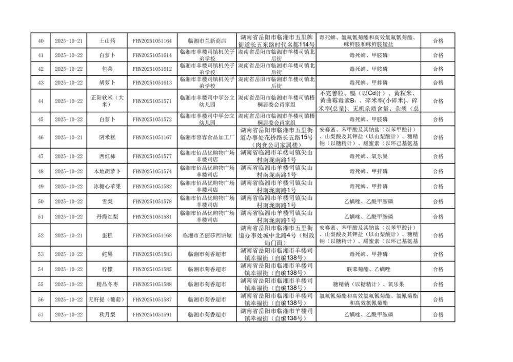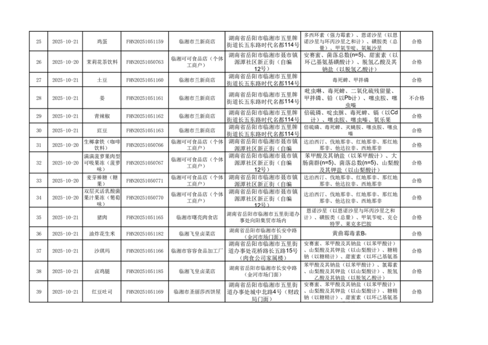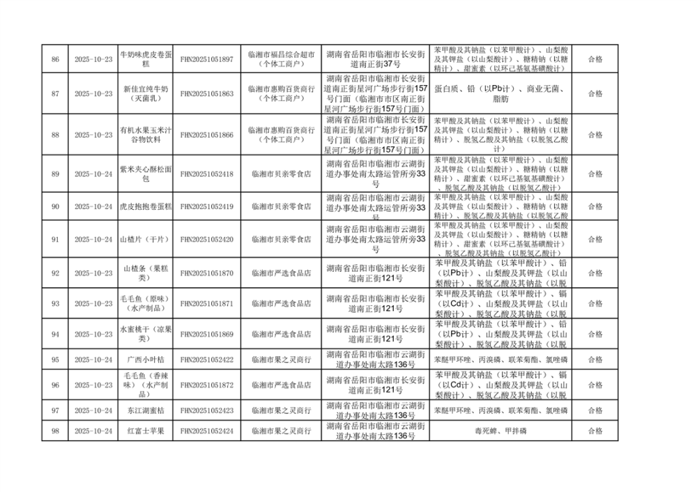 临湘市市场监督管理局2025年“你点我检”专项、四季度食品抽检信息公示