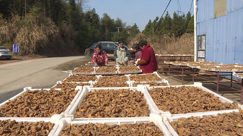 聂市镇凤形村居民彭金梅:“我们家里没多少事的时候,我就来跟老板弄黄精,一天能搞百把元,一年也能搞万把块钱。”