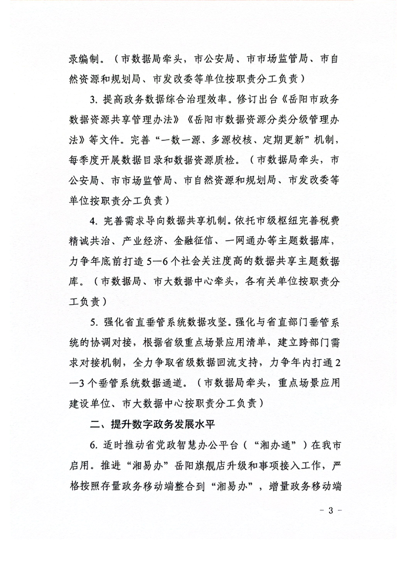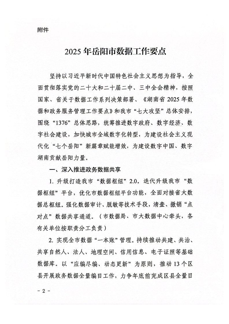 关于印发《2025 年岳阳市数据工作要点》的通知