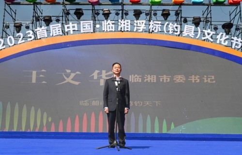 开幕仪式上,李挚宣布2023首届中国临湘浮标钓具文化节开幕。陈阁辉与王文华分别在开幕仪式上致辞。王文华说,近年来,我市打好经济发展主动仗,坚持政府指导、市场化运作思路,坚定不移推进产城产文融合、生产生活生态兼备的浮标产业小镇发展,先后获评“全国休闲渔业示范基地”、“第三批湖湘风情文化旅游小镇”、“省级工业旅游示范点”。目前,浮标小镇形成了以浮标生产为龙头,涵盖钓竿、钓线、钓饵、钓箱、路亚假饵、智能浮标等上下游产品的钓具全系列产品,基本形成了原材料供应,浮标生产、机械制造、油漆美工、包装印刷、电商物流于一体的产业链条。截止2022年底,我市浮标行业市场主体达1400余家,从业人员达3.5万人,浮标产品国内市场占有率超过80%,总产值近50亿元,“临湘的标、威海的杆”享誉全国,产品远销欧美、东南亚等国家和地区。