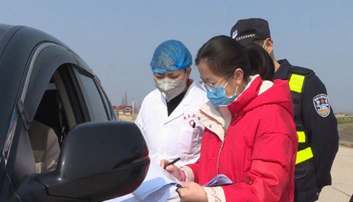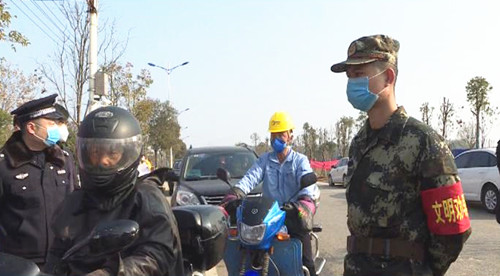在S208省道云溪与临湘交界处的江南镇防疫检查点执勤的队伍中有一名叫徐凰林的“休假军人”,从初三上阵至今,几乎没有休息过。除了负责值守,他还是江南镇儒溪社区开展追访武汉返临人员工作的“主力军”。而此时,他的爱人何琦钊正在黄盖镇上门入户,开展外地回临人员的访视、检测工作。