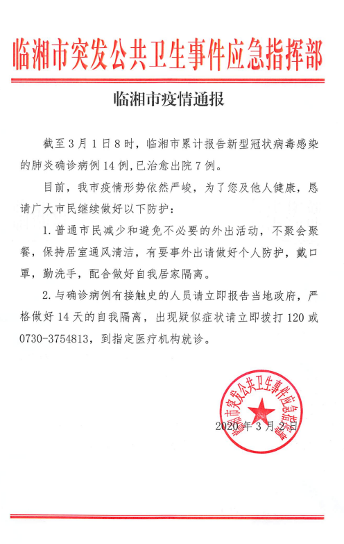 临湘市疫情通报(3月2日)
