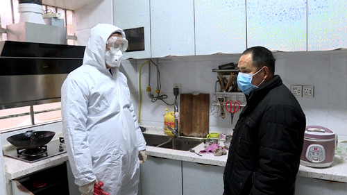 在南太路富民巷,接到报险电话的华润燃气工作人员,在换好防护服后进入市民家中排查故障。