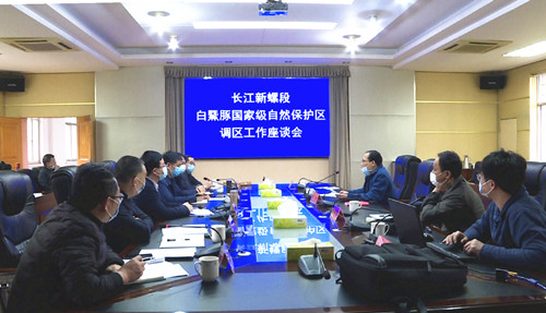 4月21日下午,长江新螺段白鳍豚国家级自然保护区管理处主任郭立鹤一行来我市,就《长江新螺段白鳍豚国家级自然保护区调区调规》征求意见。市委书记谢胜、副市长夏逢响及相关单位负责人参加座谈会。