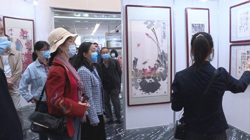 开幕式后,朱中华、余三定、李孟阳等与专家学者和嘉宾们,在工作人员的解说指引下,共同参观方禹门先生的书法、国画、篆刻作品,品鉴方老先生师承有道、传承有序的齐派艺术,继承传统、勇于创新的艺术风格和热爱祖国、热爱人民的艺术姿态。