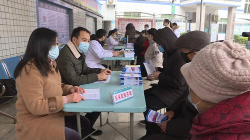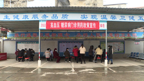 2020年12月15日,冬日暖阳。桃林镇中心卫生院内,由市医保局组织的部分医疗专家,在对筛查出来的糖尿病、高血压病服药依从性不好、治疗控制效果不佳的患者再次进行检查,制定治疗方案,进行疾病预防及健康教育宣讲。