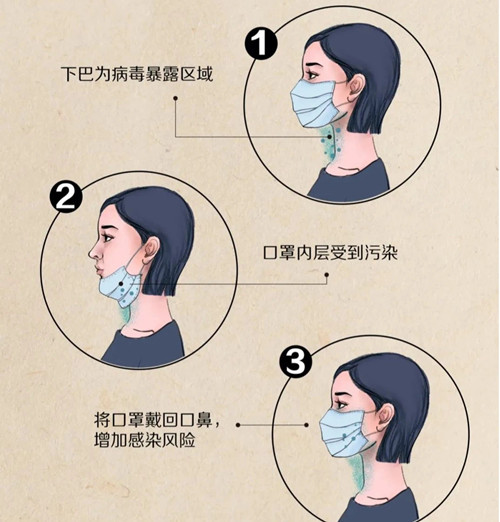 市人民医院院感科干事陈杏说:“有些人为了交谈或者饮食方便,将口罩拉至下颌、脖颈等位置,这是错误的。我们的下颌、脖颈暴露在外面,易受到病毒污染,将口罩拉下来,会让口罩内侧受到污染,再重新戴回去时,易经由口鼻感染上病毒。所以如有需要,我们可以直接捏着口罩的耳挂或者橡皮筋,将它摘下来,装入密封袋,妥善保管。”