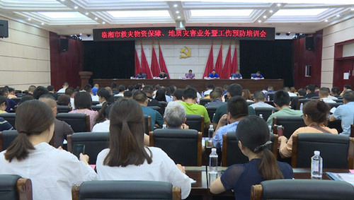 5月10日上午,我市举办救灾物资保障、地质灾害业务暨工伤预防培训班。各镇(街道)相关负责人、村(社区)灾情信息员参加培训。