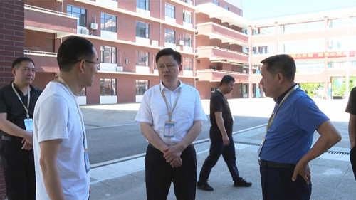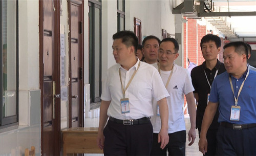 在市第一中学,廖星辉一行实地察看了学校食堂、试卷保密室、监控室等重点场所,详细了解考场设置、安全保密、疫情防控、应急准备等工作情况。