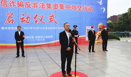 市委副书记、代市长刘琦:“我宣布,临湘市反电信诈骗反非法集资集中攻坚行动现在开始。”