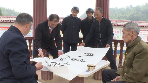 活动开了手脚,涂复光老人像往常一样约上几位村民好友,在村民服务中心的太白遗风亭里以文会友。他们相互吟诗作对、挥墨成书。不知不觉,诗联书法作品已经挂满了整个凉亭。