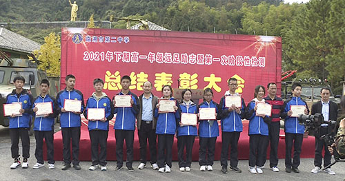 远足活动结束后,该校在6501景区召开总结表彰大会,校领导们向阶段性检测成绩优异的学生颁发了奖状。该校校长寄语学子们,要在今后的学习道路上发扬远足精神,不惧挑战,披荆斩棘,勇于追梦,交出无愧于青春、无愧于时代的历史答卷。