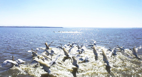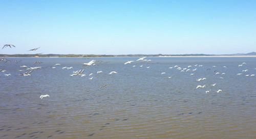 黄盖湖自然保护区管理中心候鸟观察员李华:“经过三年的生态修复与环境治理,黄盖湖自然保护区的水质得到明显改善,越冬的候鸟数量逐渐递增,其中一级的有4种,达到80余只;二级的有30余种,达到1万余只。现在已有2万余只候鸟,高峰期可以达到5万余只。”