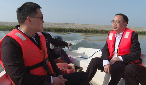 来到土咀泵站,刘琦一行现场察看源潭河拟建人工湿地点位,详细了解项目建设规划情况。刘琦还乘船察看了黄盖湖国控断面监测点水质与冶湖流域水环境整治工作情况。