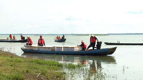活动现场,市领导和渔民代表们把一盆盆活蹦乱跳的优质鱼苗投入黄盖湖,一尾尾放流的鱼儿在江中欢歌畅游。
