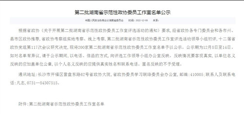 忠防镇政协委员工作室入选第二批湖南省示范性政协委员工作室名单