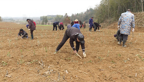 在农胜村五星茶园,基地负责人在现场对茶苗栽种间距、技术标准等进行把关,悉心指导茶农栽植茶苗;60余名农户趁着好天气在开垦过的山地上忙着搬运、松土、覆土、种植。茶山上一幅“人勤春早”的乡村画卷徐徐展开。