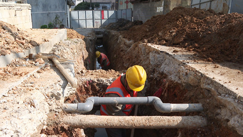 在长白路、永昌西路水环境综合治理PPP项目施工现场,施工人员正在抢抓晴好天气,探挖地下管线,平整沟槽,为垫层施工和管道安装做好充分准备。