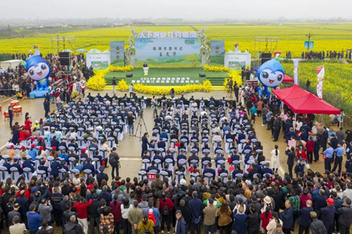 开幕式上,马娜宣布“天下洞庭·花约临湘”2023年岳阳国际旅游节暨第五届江南油菜花节正式启动。