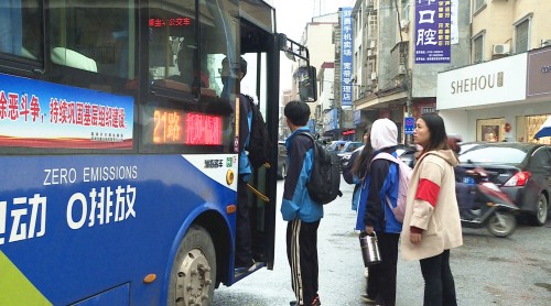 在市第二中学校门前,龙鑫公司增派工作人员现场指挥接送车辆在规定位置停靠,有序疏导社会车辆安全通过学校门前路段,保障学生们在放学高峰时段能够安全有序的登上公交车。