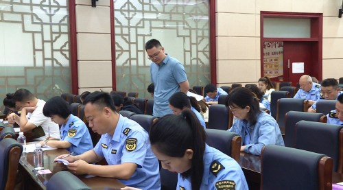5月6日上午,岳阳市生态环境局临湘分局组织开展生态环境法律法规知识学习考试竞赛。副市长姚铁军担任监考官。