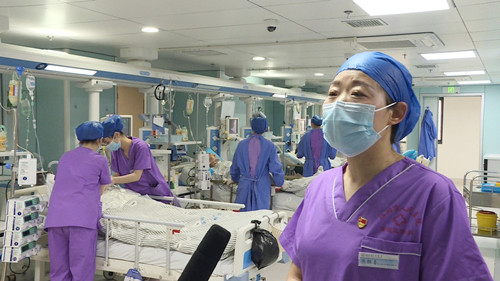 市人民医院ICU护士长黄银喜:“看着这些和自己孩子差不多大的医护人员,真的都很努力,只要吃得消,就尽量帮她们多做点。”