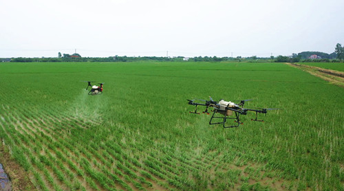 连日来,随着气温升高,早稻病虫害防治也进入关键期。为提高农作物病虫害统防统治效果,我市整合植保无人机资源,开展专业化、精细化统防统治服务,为早稻稳产增产打下良好的基础。