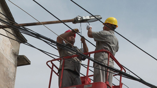 进入夏季用电高峰期,太阳暴晒极易对一些老线路带来“负压”。市城管局照明事务中心的工作人员拆旧灯、换新灯,检修抢修马不停蹄。既方便了市民夜间出行和休闲娱乐,也极大程度美化了城市夜景,同时也消除了电力安全隐患。