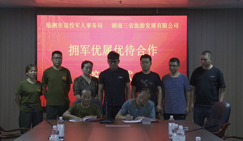 签约仪式上,市退役军人事务局与湖南三省(6501)旅游发展有限公司负责人签署了《拥军优抚合作协议》,并颁授拥军联盟成员单位标牌。