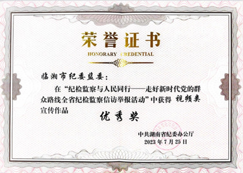 在由省纪委监委牵头组织开展的“纪检监察与人民同行——走好新时代党的群众路线全省纪检监察信访举报活动”中,我市纪委监委制作的短视频宣传作品《检举控告是权利,规矩规则要牢记》跻身全省同类型作品13个获奖名单,荣获“优秀奖”。
