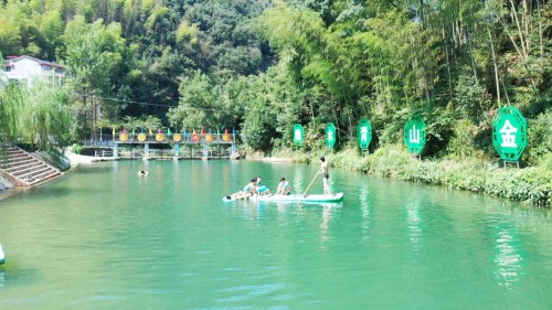 地处药菇山余脉、团湾水库发源地的詹桥镇长浩村因地制宜,打造了近千平米的“露天游泳池”,吸引了不少游客慕名前来休闲“打卡”。她们有的在水中玩水嬉戏,有的悠闲的躺在游泳圈上,缓缓在水面上划行,尽情享受着秋日的清凉。