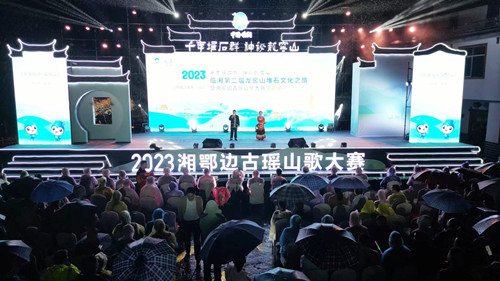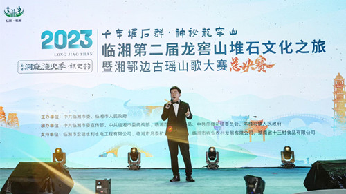 9月21日晚,岳阳洞庭渔火季·秋之韵——“千年堆石群 神秘龙窖山”2023临湘第二届龙窖山堆石文化之旅暨湘鄂边古瑶山歌大赛总决赛,在龙窖山风景名胜区举行。湖南省歌舞剧有限责任公司副总经理孟亮,我市领导易兴建、罗筱波、熊丽、黎建平、马榕等出席活动。