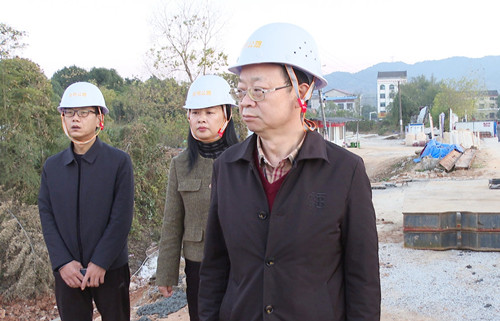 孙少游一行先后来到季兰坡公跨铁桥、S203线羊楼司至和平公路段路面改善工程项目的施工现场,通过实地察看、听取汇报,详细了解我市公路建设、管养现状和公跨铁桥规划设计情况。