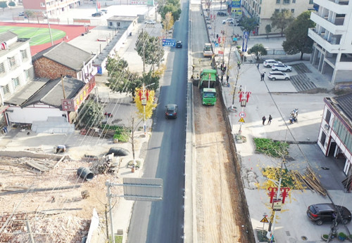 在G107线羊楼司段大修工程项目施工现场,摊铺机、压土机来回穿梭压实路面、摊铺水稳层,工人们各司其职,忙中有序,呈现出一派热火朝天的景象。